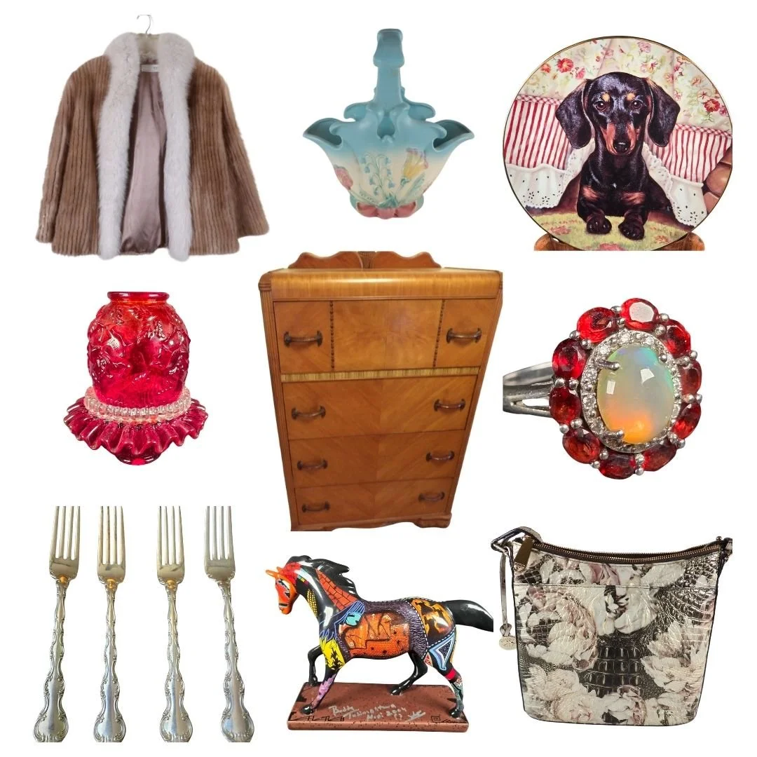Sterling silver, home decor, jewelry, furniture, and furs, oh my! This auction truly has a little something for everyone: Reed and Barton, Fenton, Trail of Painted Ponies, Gorham Silver, Fashion Jewelry, Vintage furniture, and so much more!